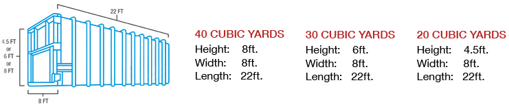 We’ll help evaluate your particular situation to determine which size container best suits you. Our three standard models vary in capacity from 20 to 30 to 40 cubic yards of volume, offering a broad range of options.